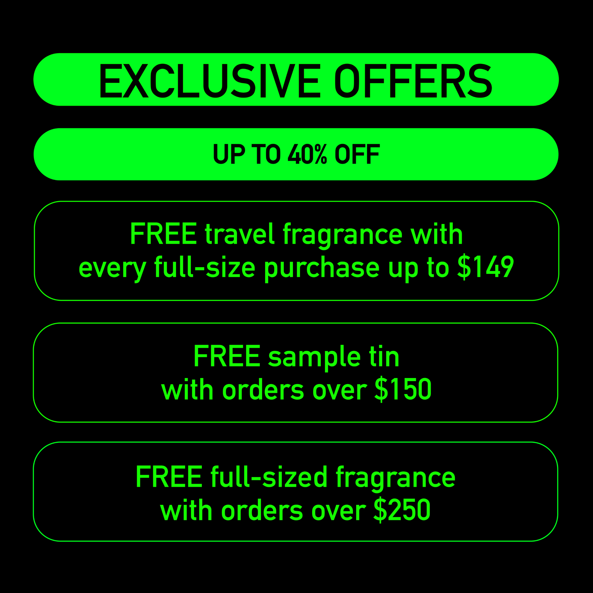 Get a 2ML Fragrance with every full size purchase in orders up to $149.00.